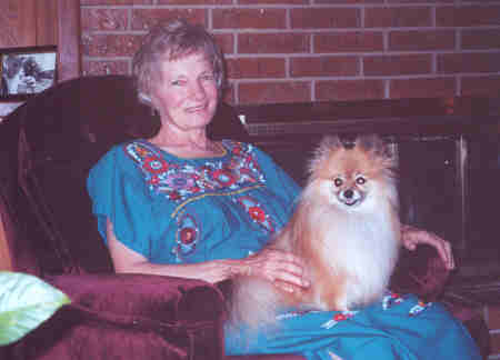 Sweetie's name tells her personality, and her picture confirms it. She has captured the heart not only of her new owner, Gladys (pictured), but also of Gladys' husband Tom, who was not a dog lover until Sweetie came into his life. Now he carries Sweetie everywhere, and doesn't like it if voices are raised around her. She also sleeps on his bed with him. Gladys' daughter says, "Everywhere my parents go, people talk about how pretty Sweetie is, with the unfortunate result of her becoming rather conceited. Her sweet quiet dominance has made her a well-loved, spoiled dog, and she spoils her owners in return." |